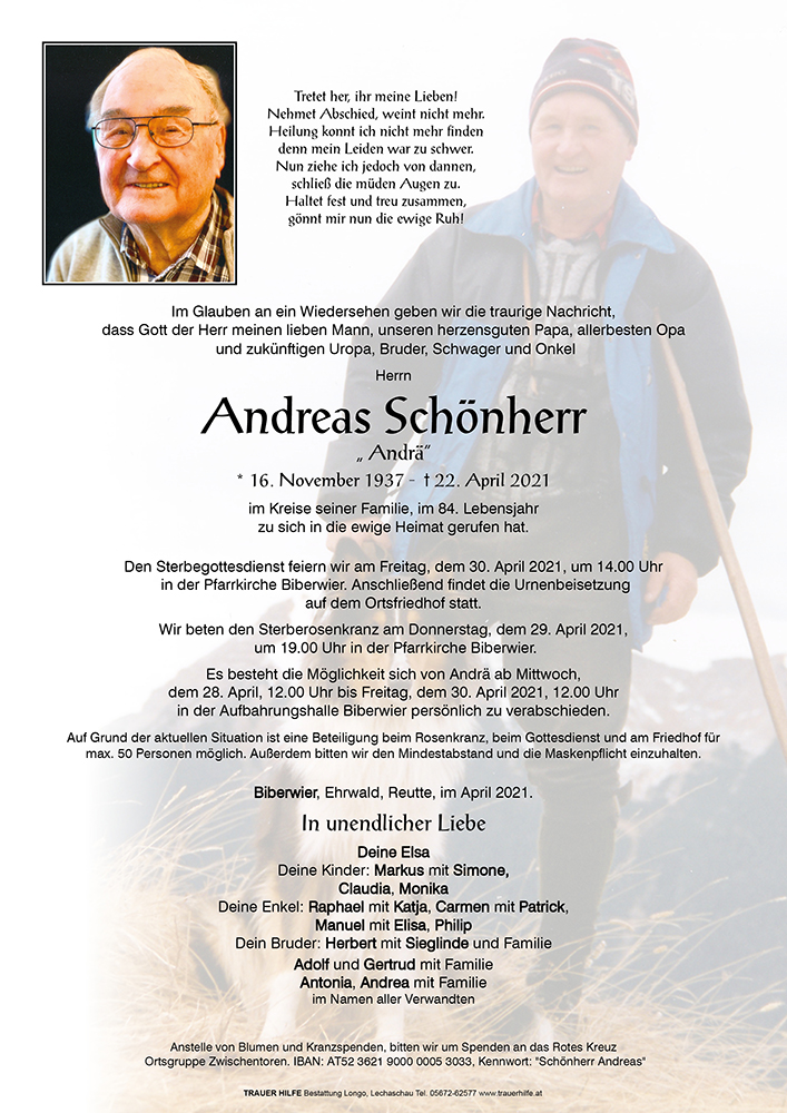 Kondolenzbuch für Andreas Schönherr