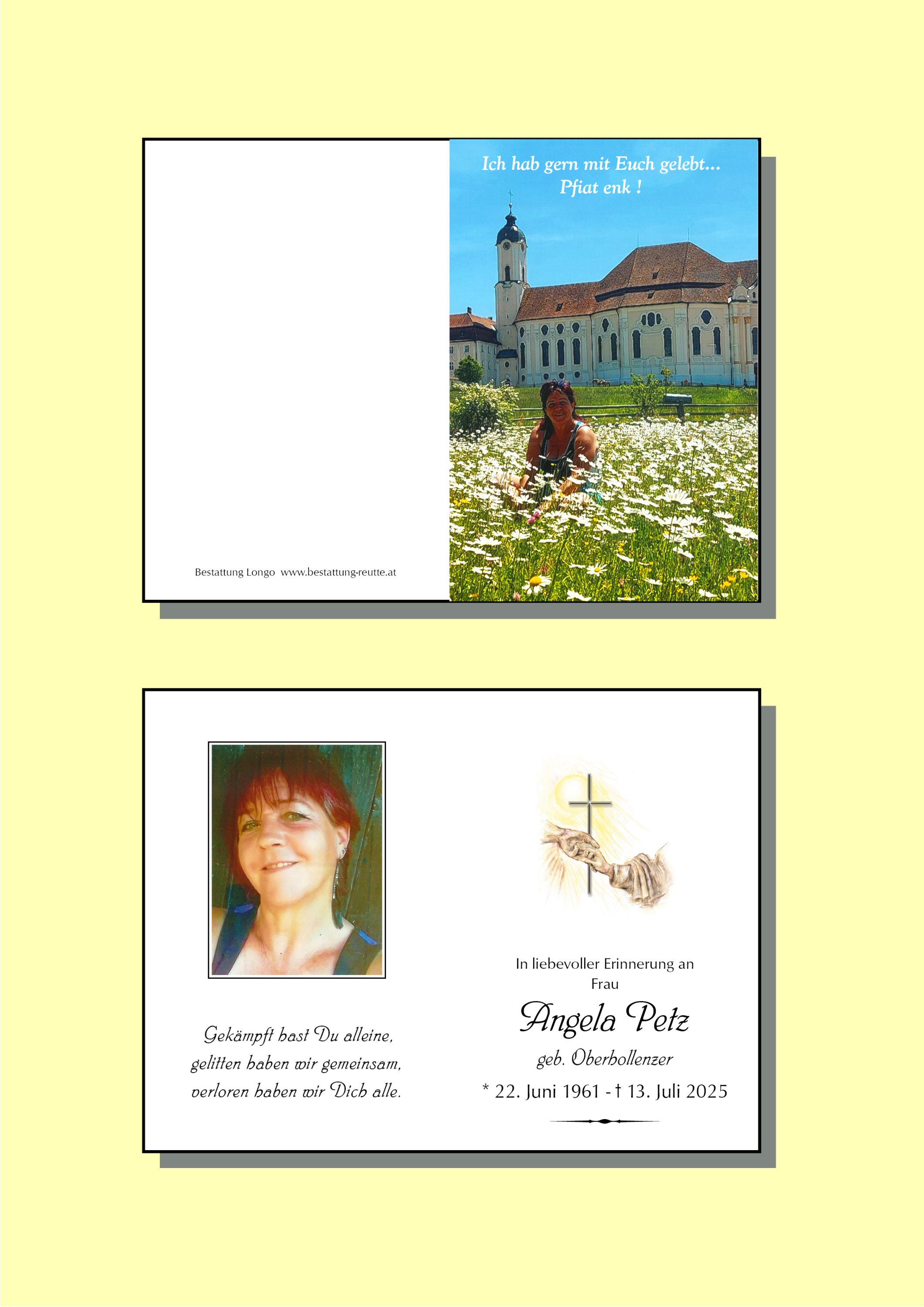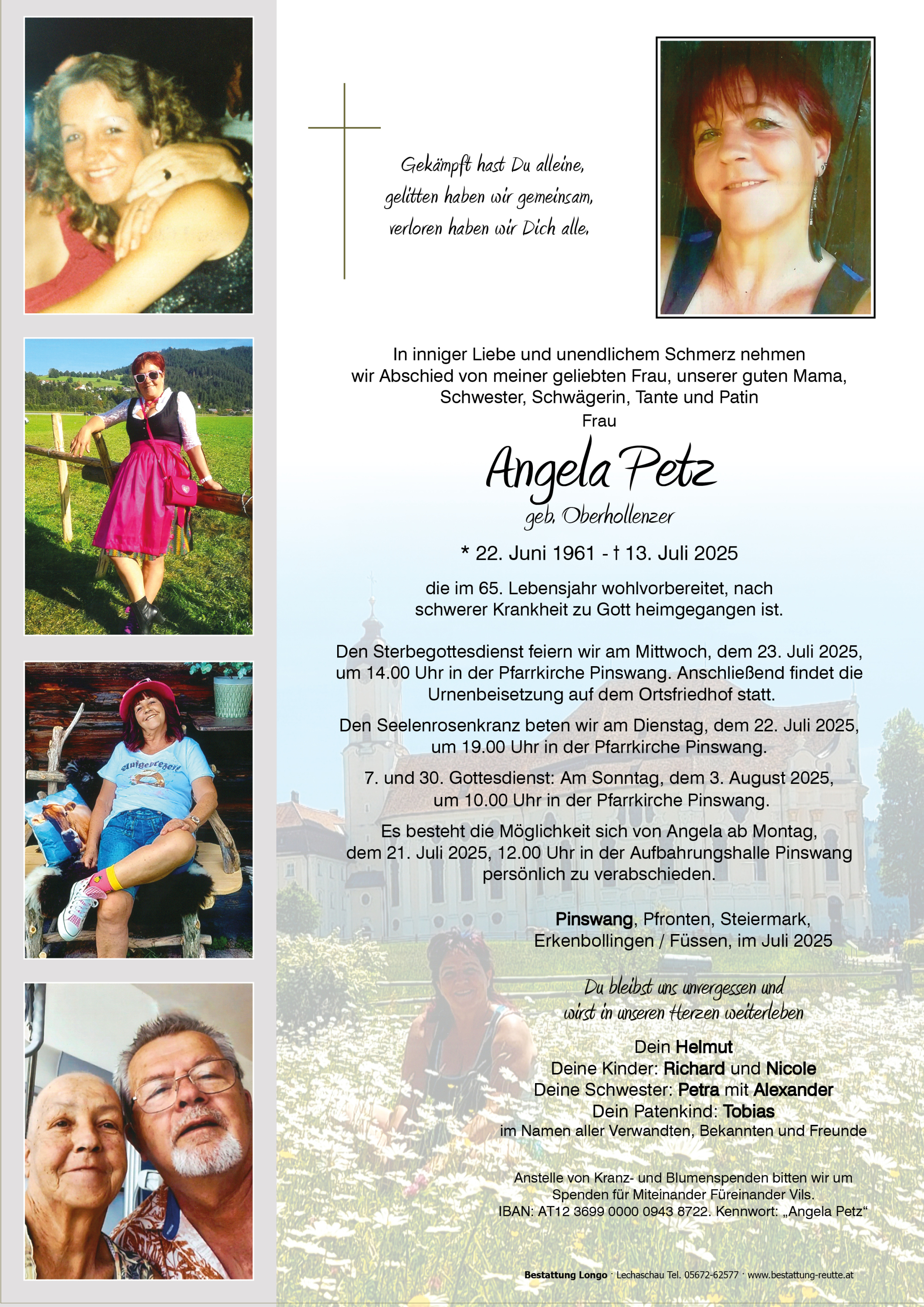 Dies wünscht euch allen die ihr mit Angela Petz verwandt u. verbunden seid von ganzem Herzen: