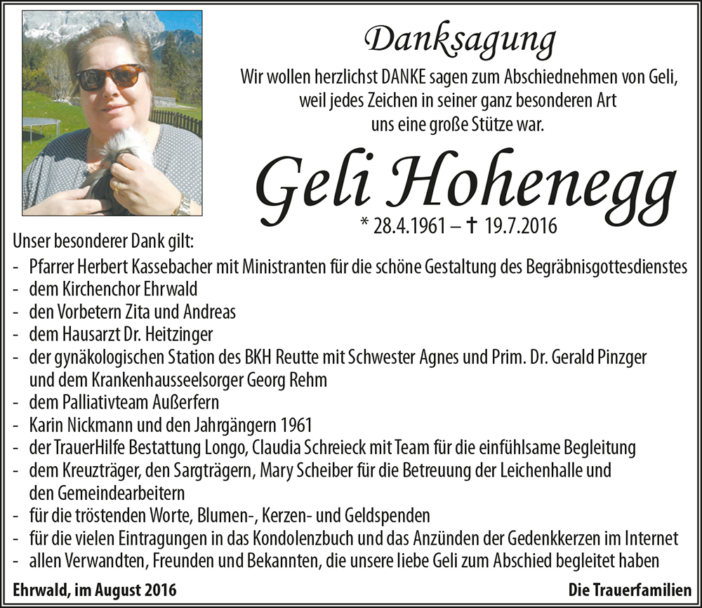 Aufrichtige Anteilnahme entbietenEuch liebe Trauerfamilie Inge Egger (Stricker)