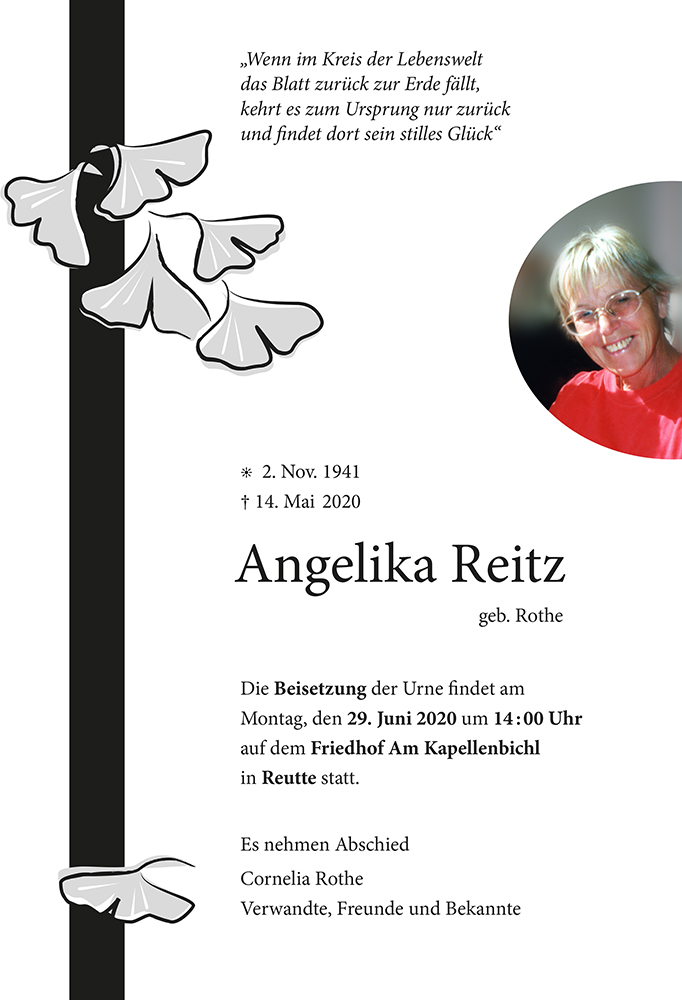 Kondolenzbuch fĂŒr Angelika Reitz