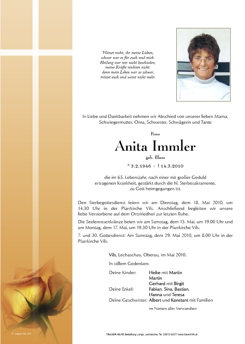 Kondolenzbuch für Anita Immler