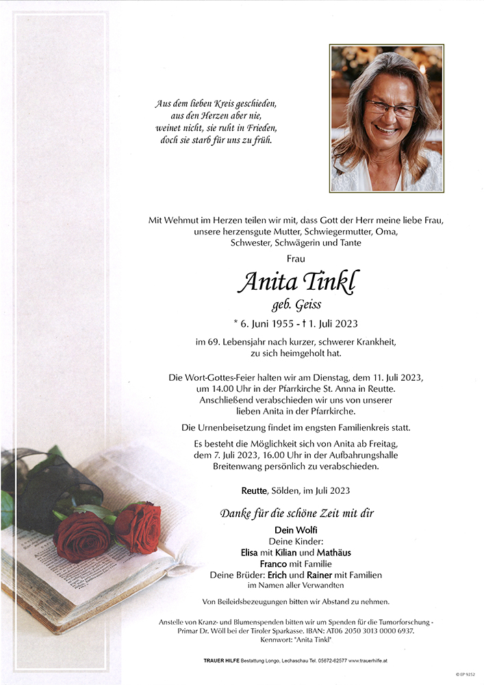 Kondolenzbuch für Anita Tinkl