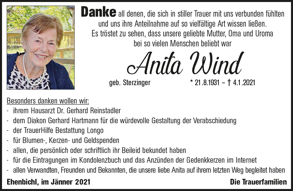 Kondolenzbuch für Anita Wind