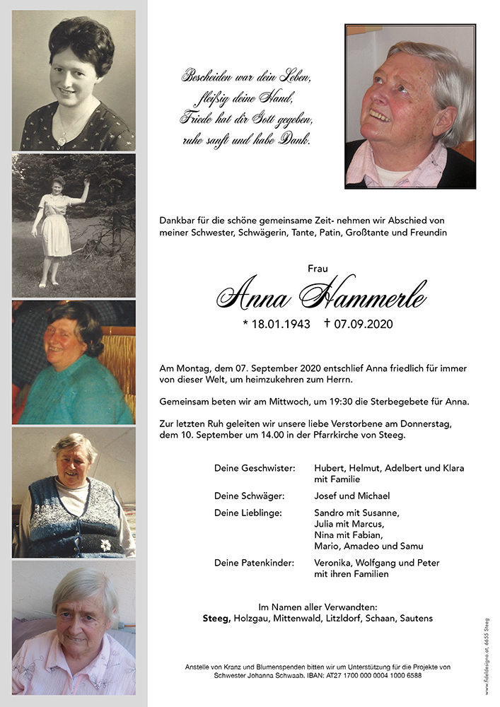Kondolenzbuch für Anna Hammerle