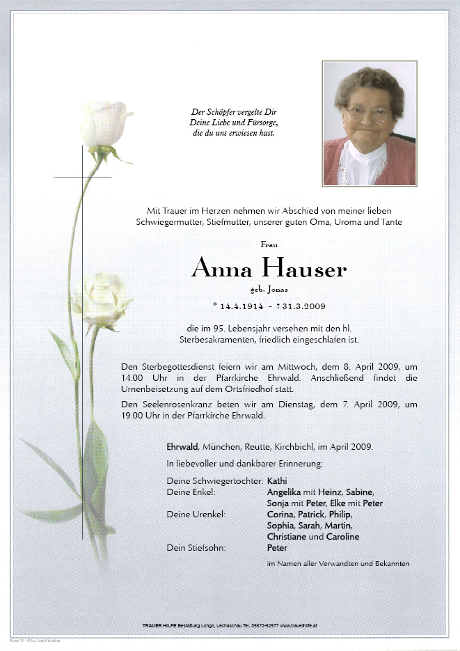 13.12.1901 31.03.2009 Ehrwald Anna Hauser Action Parte Gedenkkerzen Kondolenzen Parte Gedenkkerzen Kondolenzen Parte herunterladen Gedenkkerzen für Anna Hauser 5 Einträge Kerze anzünden Kathi Sabine, Philip und Sarah Sonja, Peter und Martin Sabine Kathi Ihre Gedenkkerze fürAnna Hauser Ihr Name* Farbe auswählen Ihre Nachricht oder Name* E-Mail-Adresse* Mit dem Klicken auf "Kerze anzünden" erklären Sie sich mit unseren Datenschutzbestimmungen einverstanden. Kondolenzbuch für Anna Hauser 0 Einträge Kondolenz verfassen Ihr Abschiedsgruß an Anna Hauser Ihr Name* E-Mail-Adresse* Ihre Nachricht* Mit dem Klicken auf "Gruß absenden" erklären Sie sich mit unseren Datenschutzbestimmungen einverstanden.