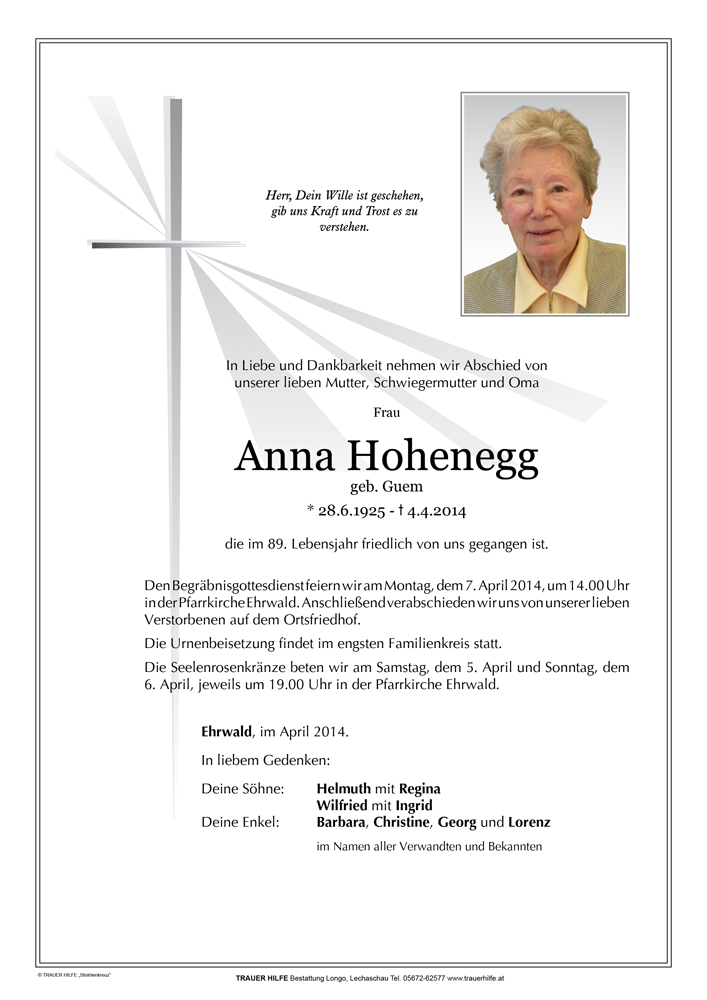 Kondolenzbuch für Anna Hohenegg
