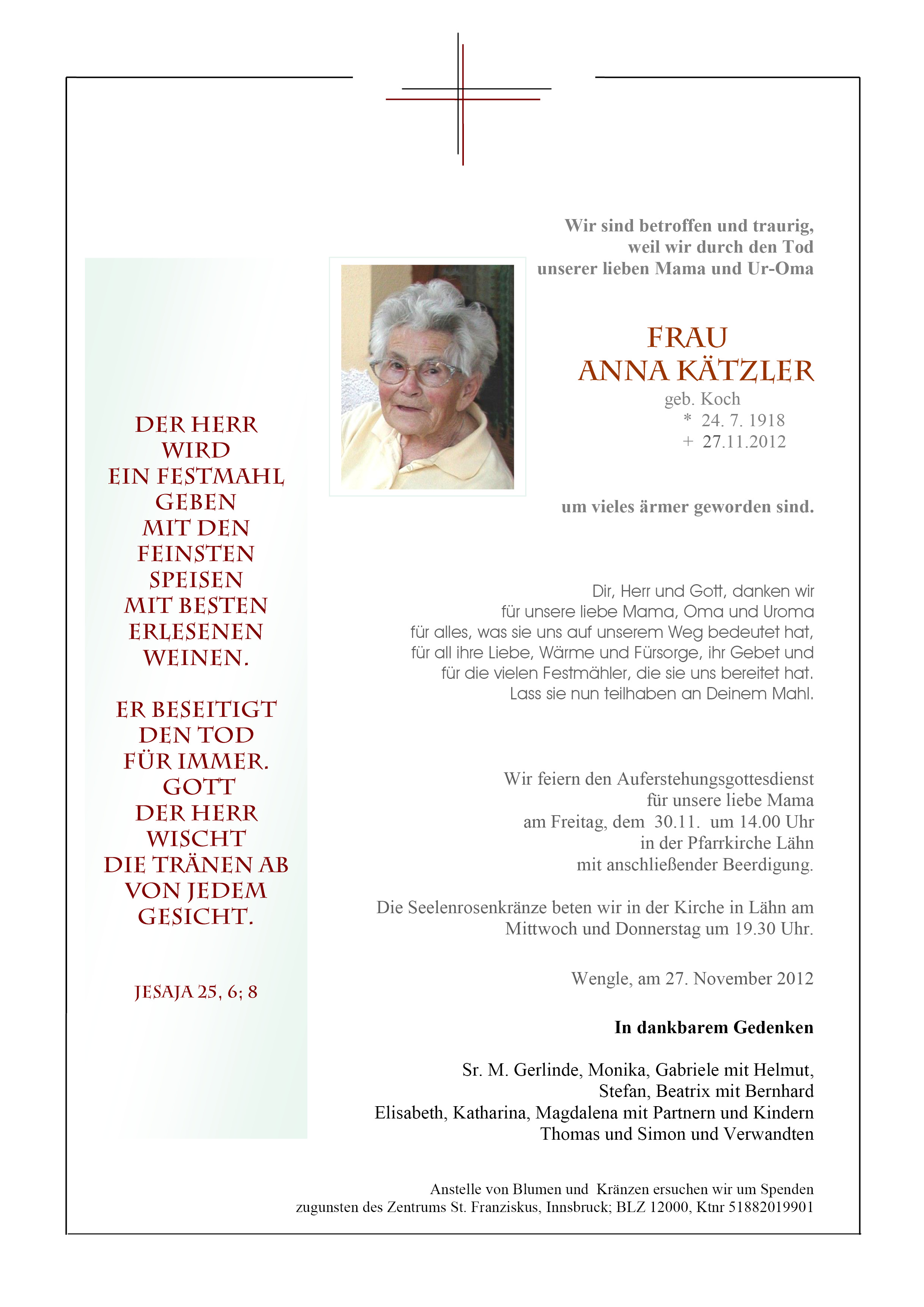 Kondolenzbuch für Anna Kätzler