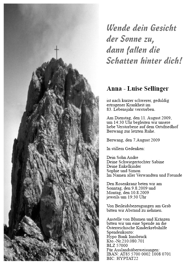 13.12.1901 07.08.2009 Berwang Anna-Luise Sellinger Action Parte Gedenkkerzen Kondolenzen Parte Gedenkkerzen Kondolenzen Parte herunterladen Gedenkkerzen für Anna-Luise Sellinger 0 Einträge Kerze anzünden Ihre Gedenkkerze fürAnna-Luise Sellinger Ihr Name* Farbe auswählen Ihre Nachricht oder Name* E-Mail-Adresse* Mit dem Klicken auf "Kerze anzünden" erklären Sie sich mit unseren Datenschutzbestimmungen einverstanden. Kondolenzbuch für Anna-Luise Sellinger 0 Einträge Kondolenz verfassen Ihr Abschiedsgruß an Anna-Luise Sellinger Ihr Name* E-Mail-Adresse* Ihre Nachricht* Mit dem Klicken auf "Gruß absenden" erklären Sie sich mit unseren Datenschutzbestimmungen einverstanden.