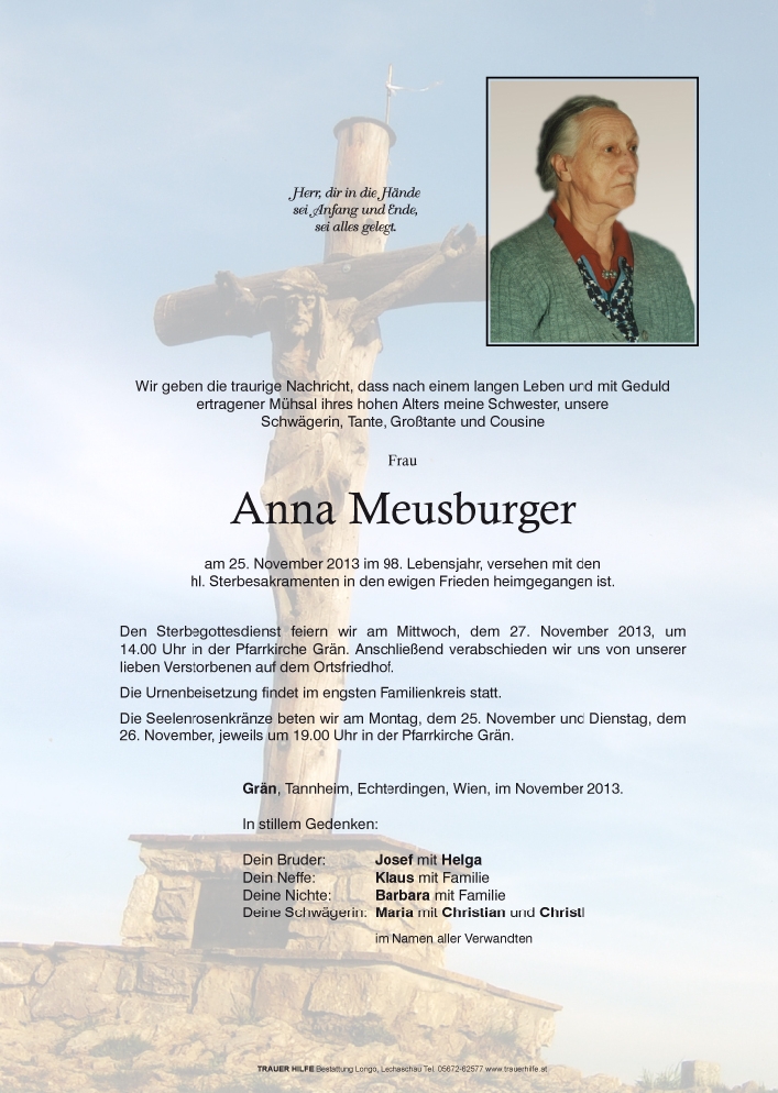 Kondolenzbuch für Anna Meusburger