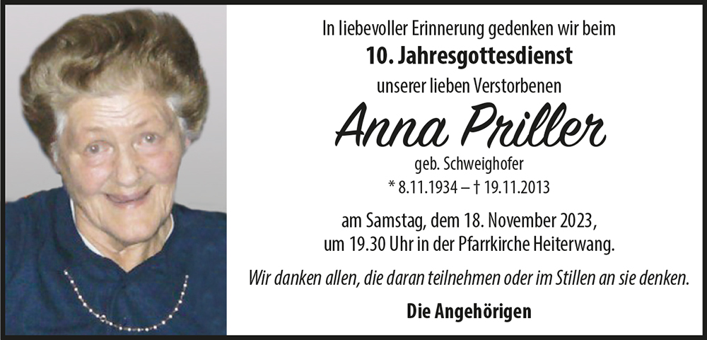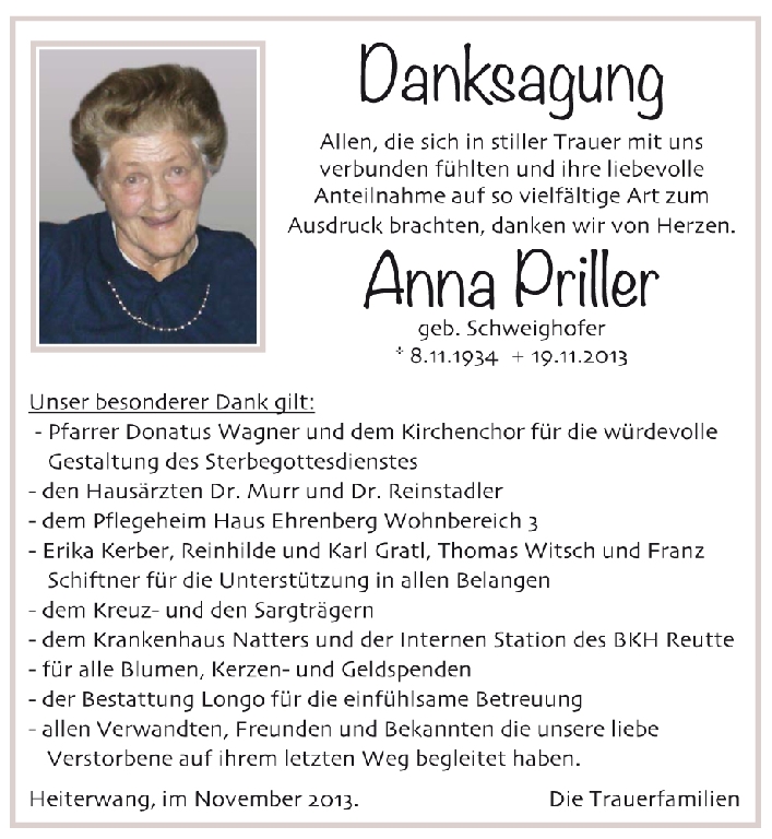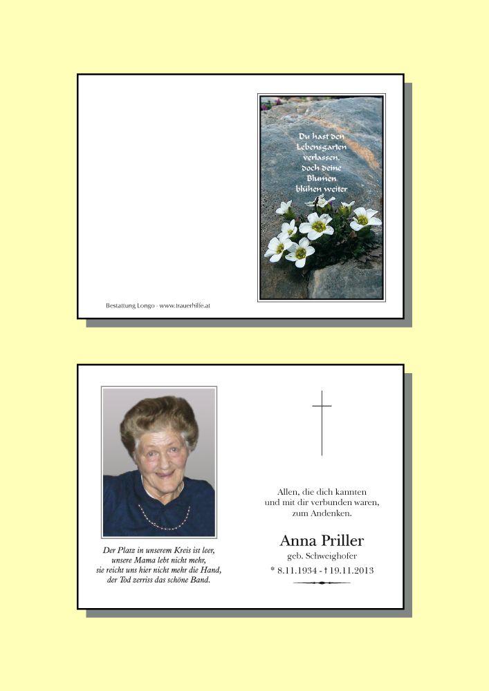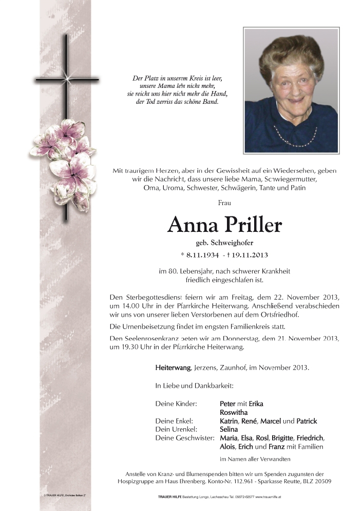 Kondolenzbuch für Anna Priller