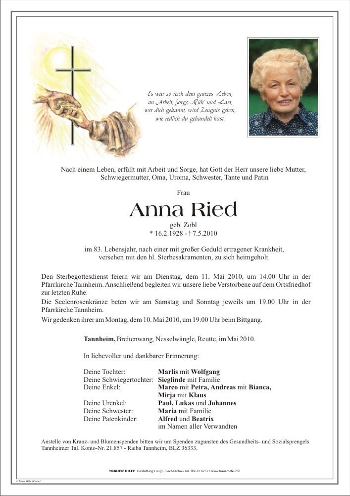 13.12.1901 07.05.2010 Tannheim Anna Ried Action Parte Sterbebild Gedenkkerzen Kondolenzen Danksagung Parte Sterbebild Gedenkkerzen Kondolenzen Danksagung Parte herunterladen Sterbebild herunterladen Gedenkkerzen für Anna Ried 12 Einträge Kerze anzünden zum 15. Jahrtag Marco & Petra Zum Gedenken Ein Licht für dich Siegfried Marco & Petra Marco & Petra Marco & Petra Marco & Petra Marco & Petra Marco & Petra Marco & Petra Marco & Petra Ihre Gedenkkerze fürAnna Ried Ihr Name* Farbe auswählen Ihre Nachricht oder Name* E-Mail-Adresse* Mit dem Klicken auf "Kerze anzünden" erklären Sie sich mit unseren Datenschutzbestimmungen einverstanden. Kondolenzbuch für Anna Ried 0 Einträge Kondolenz verfassen Ihr Abschiedsgruß an Anna Ried Ihr Name* E-Mail-Adresse* Ihre Nachricht* Mit dem Klicken auf "Gruß absenden" erklären Sie sich mit unseren Datenschutzbestimmungen einverstanden. Danksagung herunterladen
