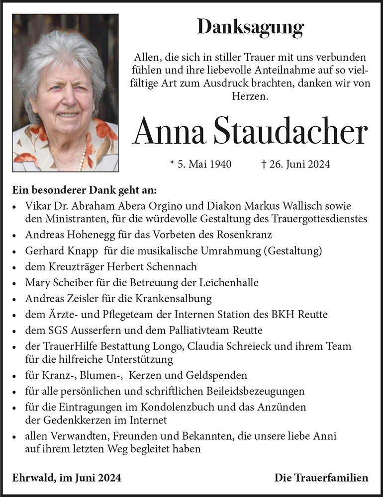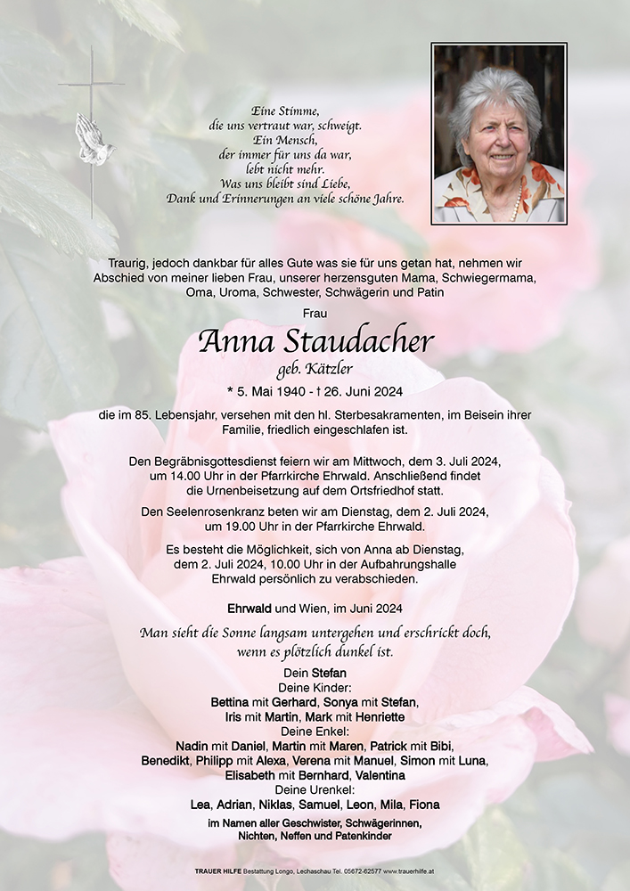 Kondolenzbuch für Anna Staudacher