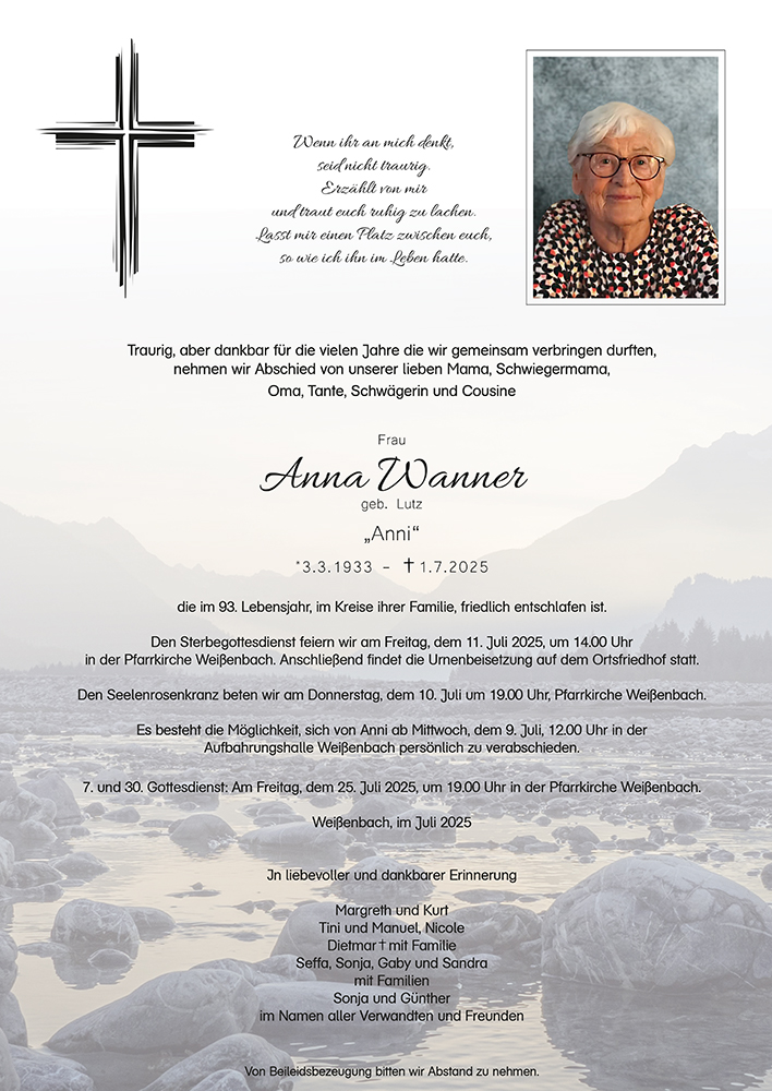 Kondolenzbuch für Anna Wanner