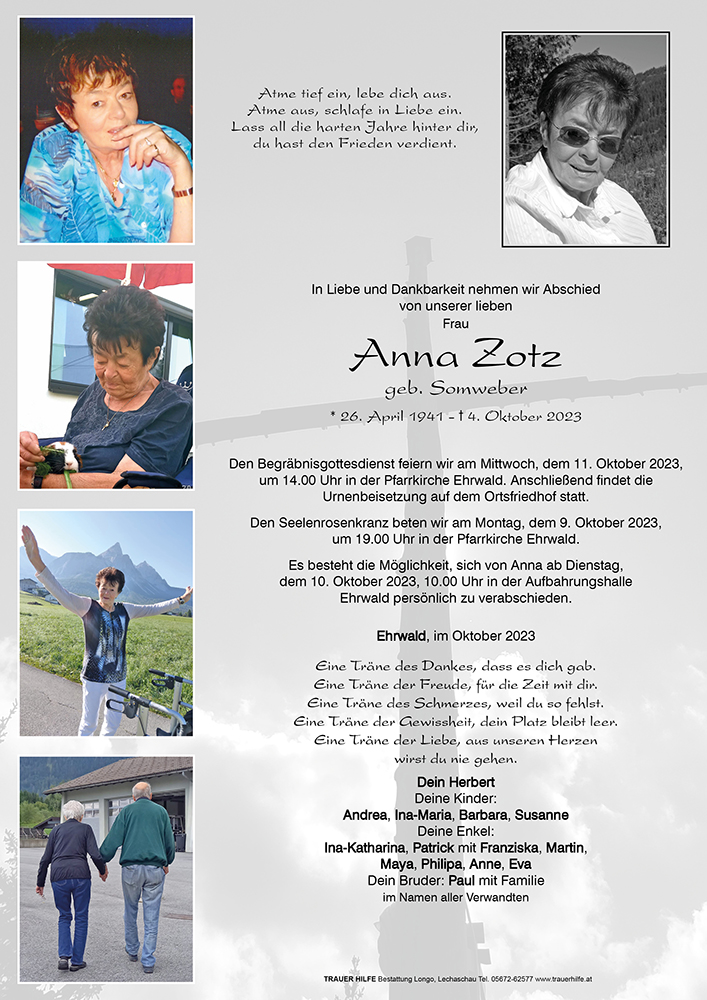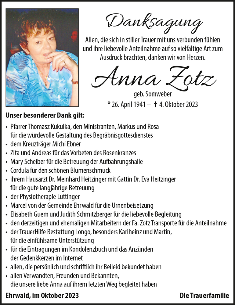 Liebe Trauerfamilie Zotz