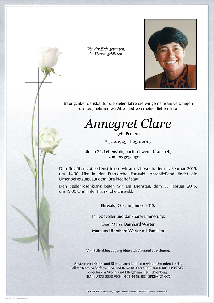 Kondolenzbuch für Annegret Clare