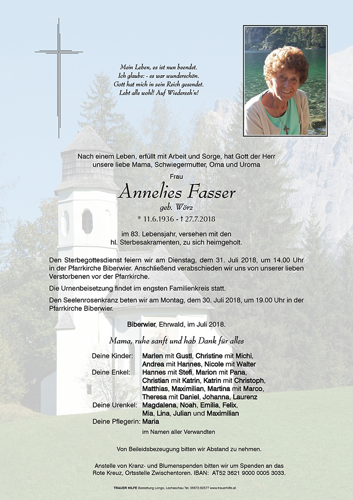 Kondolenzbuch für Annelies Fasser