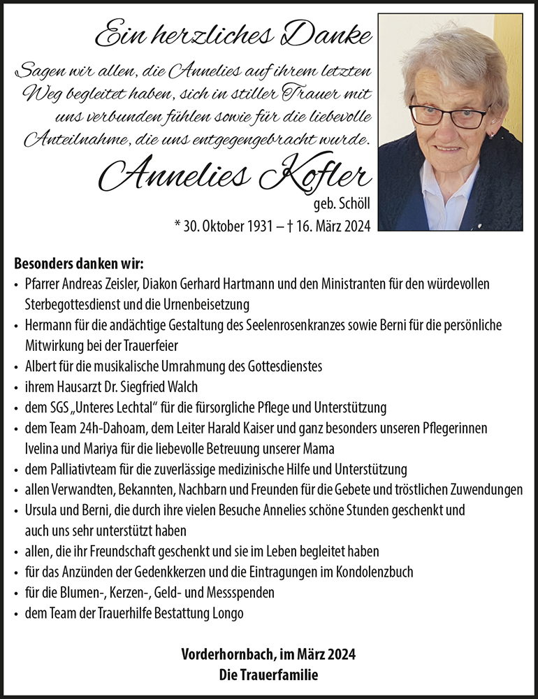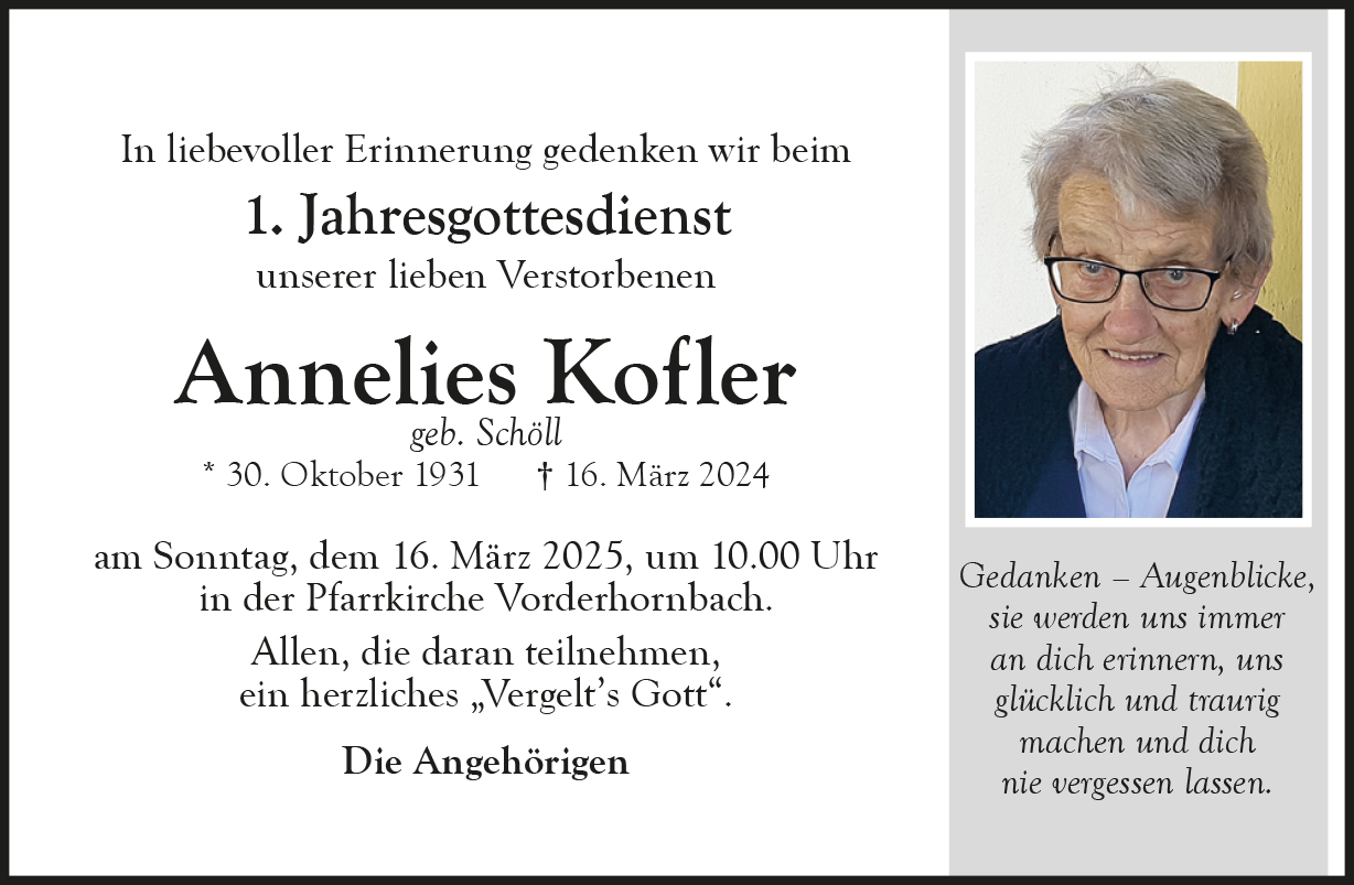 Kondolenzbuch für Annelies Kofler