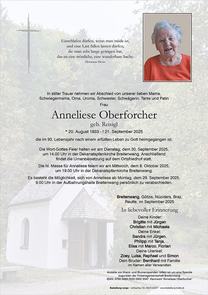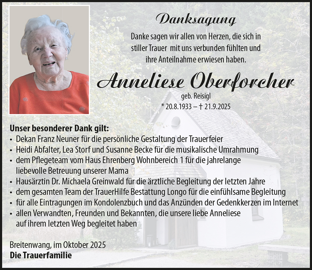 Kondolenzbuch für Anneliese Oberforcher