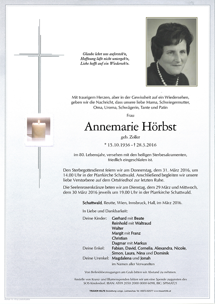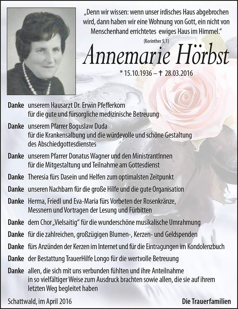Kondolenzbuch für Annemarie Hörbst