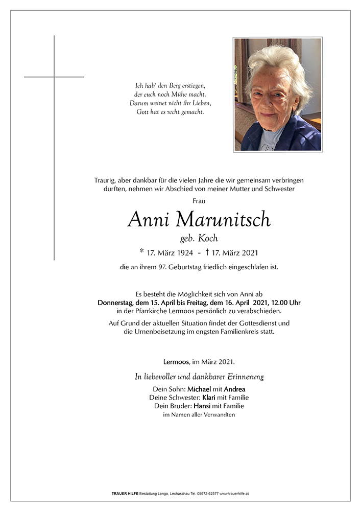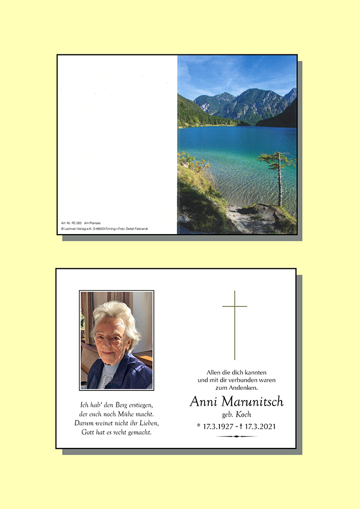 Kondolenzbuch für Anni Marunitsch