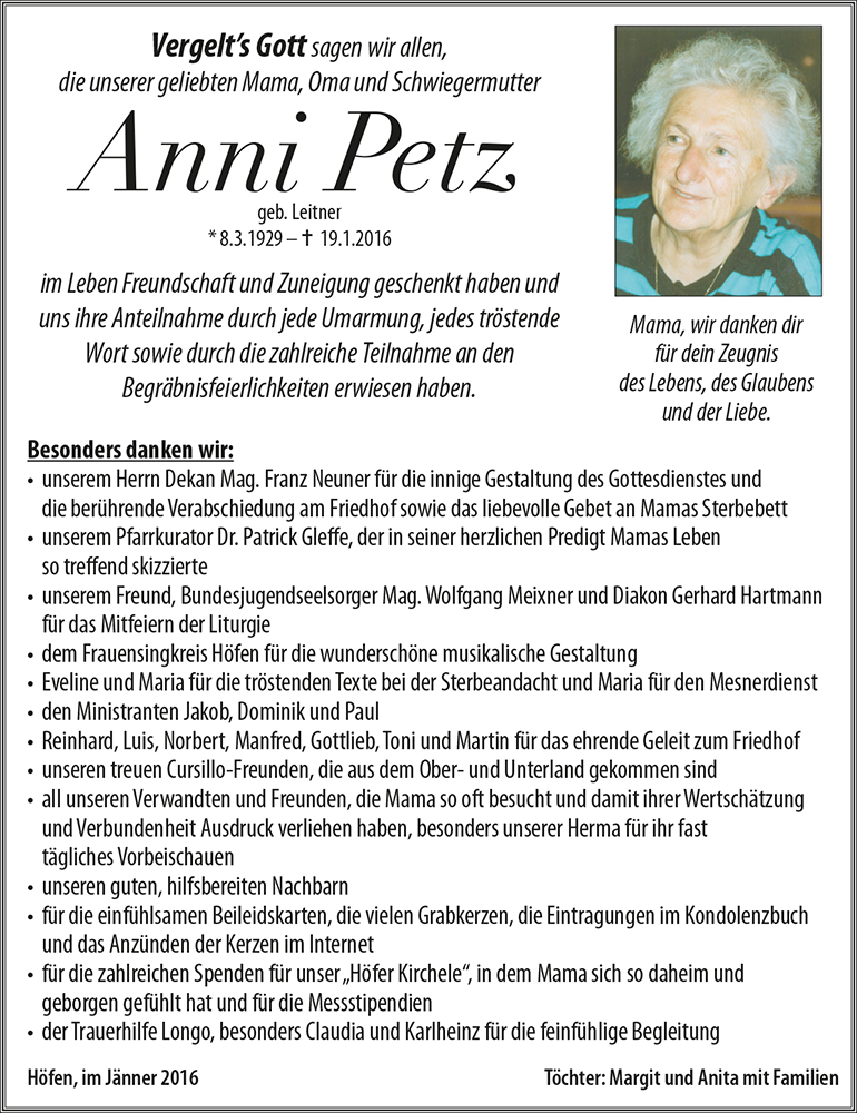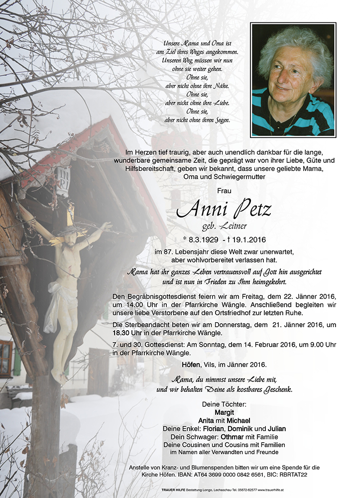 Kondolenzbuch für Anni Petz