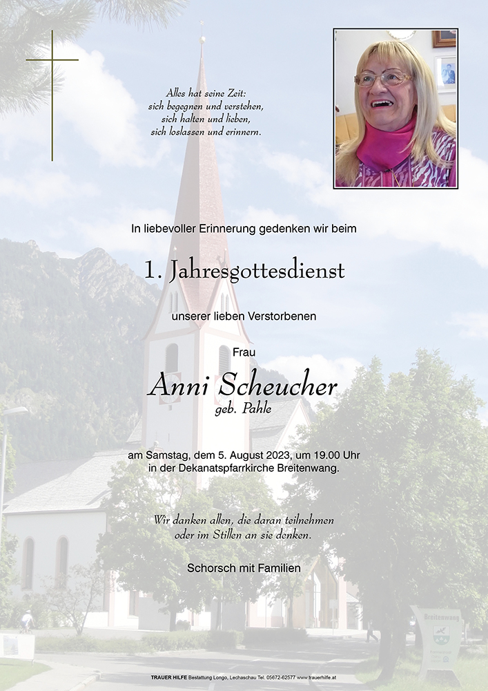 Zum Jahresgedenken Anna-Maria Tschiderer