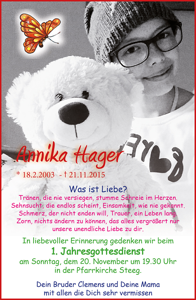 Kondolenzbuch für Annika Hager
