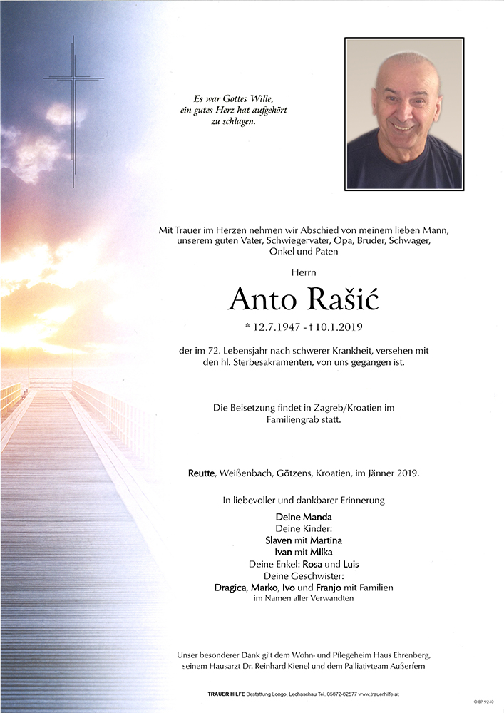 Kondolenzbuch für Anto Rasic