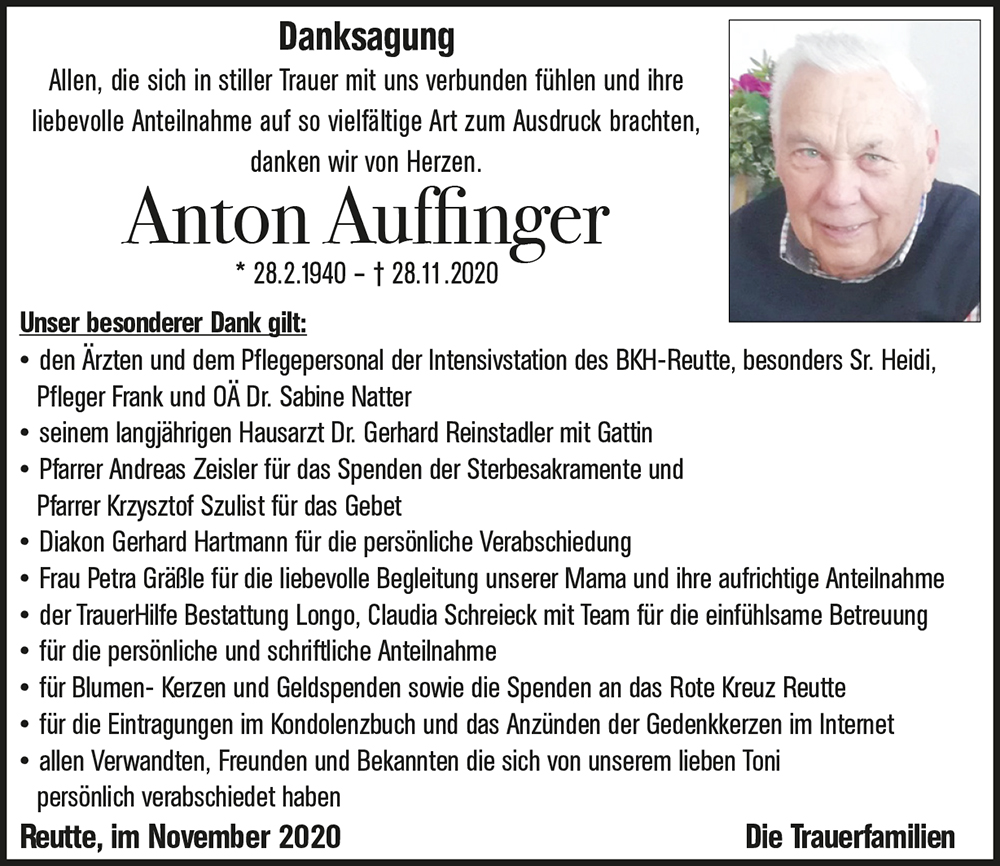 Kondolenzbuch für Anton Auffinger