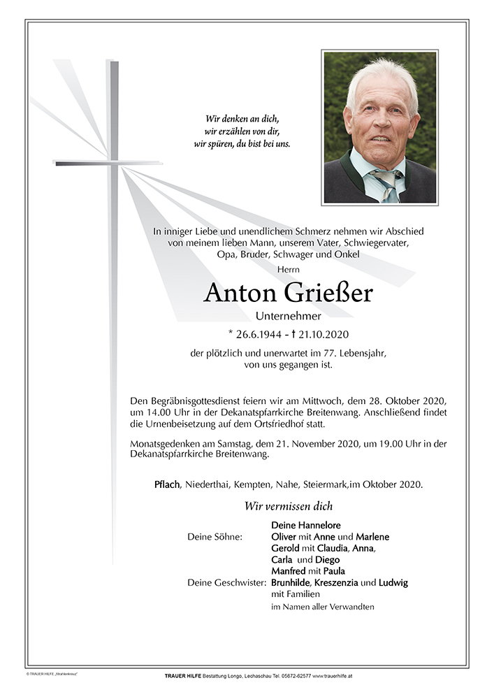 Kondolenzbuch für Anton Grießer