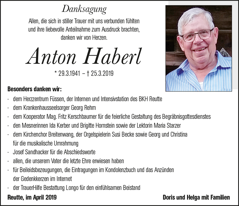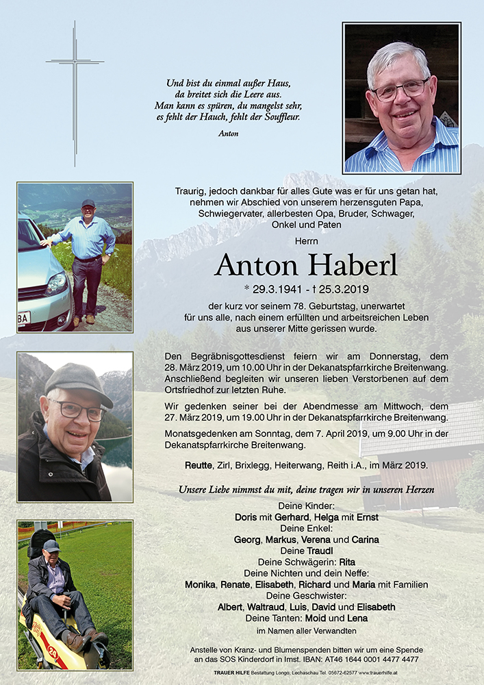 Kondolenzbuch für Anton Haberl