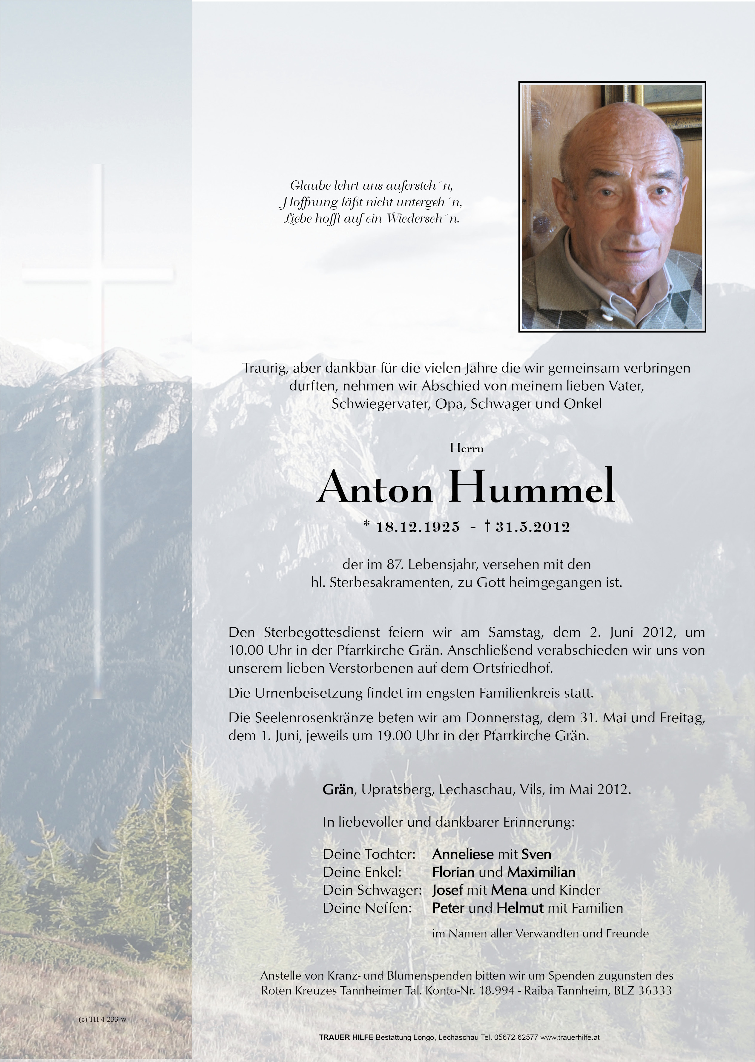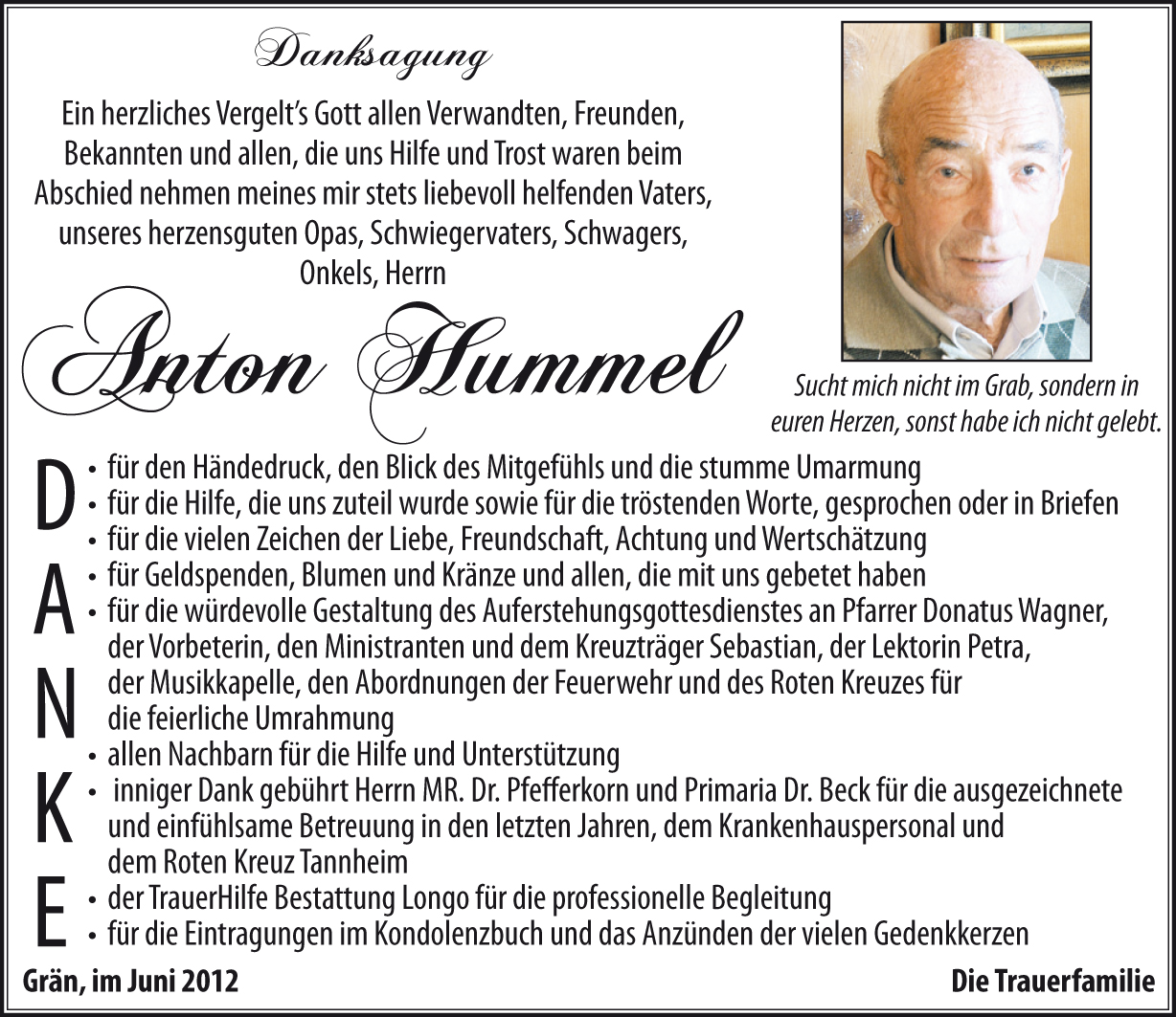 Kondolenzbuch für Anton Hummel