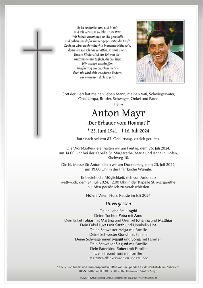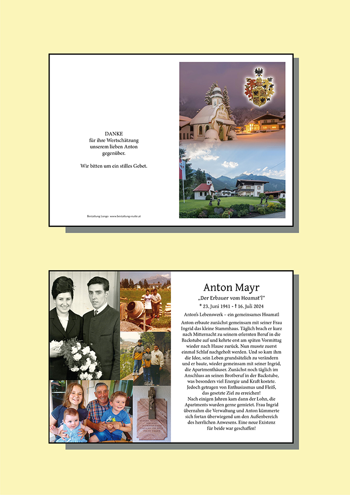 Zum 1.Jahrtag Fam. Oskar u. Marlies Ginther