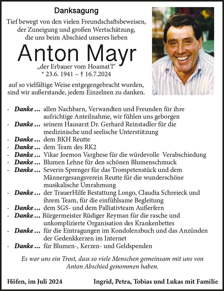 Der ganzen Trauerfamilie unser aufrichtiges Beileid.