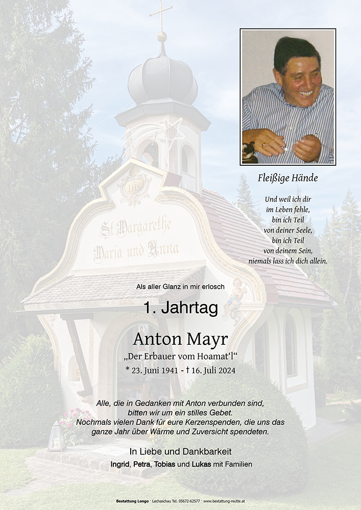 Zum Jahresgedenken. Fam. Tabojer/ Rum
