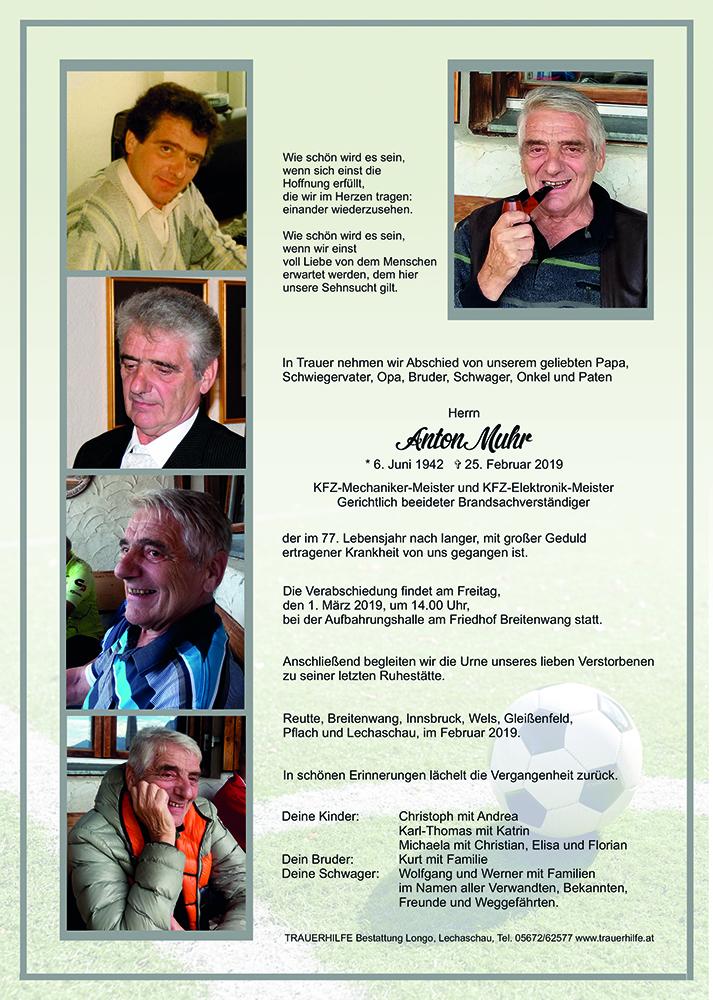 ich möchte Ihnen persönlich auf diesem Wege mein herzliches Beileid aussprechen. Ich hatte die Ehre mit dem Toni viele Jahre in seinem Spezialgebiet Brandursachengutachten zusammenzuarbeiten. Er war der beste auf diesem Gebiet . Darüber hinaus war er netter ehrlicher Kollege. Wir waren nicht nur beruflich verbunden, sondern waren befreundet und hatten immer wieder Kontakt. Zuletzt habe ich mit Toni letztes Jahr mehrfach telefoniert und wollte ihn Anfang Dezember zu unserer Weihnachtsfeier einladen. Er hat mir dabei gesagt dass es ihm gesundheitlich nicht so gut geht und er leider nicht kommen kann. Das er nun so plötzlich gestorben ist und ich ihn nicht mehr treffen konnte macht mich traurig. Ich wünsche Ihnen viel Kraft..
