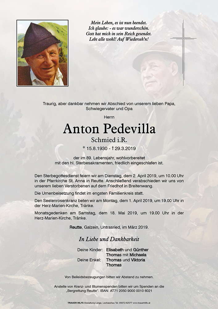 Kondolenzbuch für Anton Pedevilla