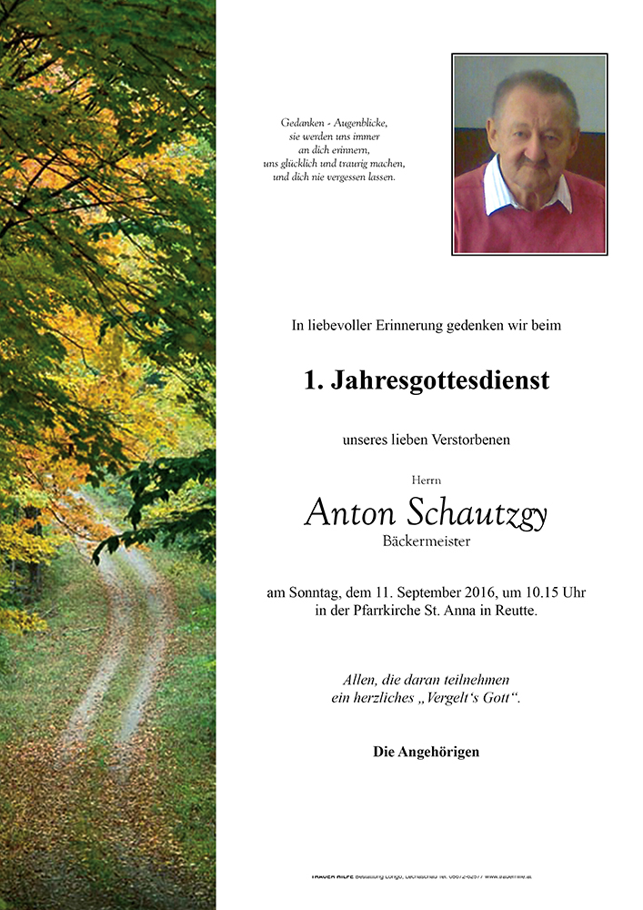 Liebe Trauerfamilie, liebe Frau Schautzgy,