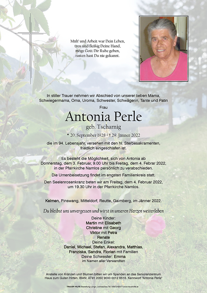 Aufrichtige Anteilnahme entbietet Fam. Karl und Maria Pellegrini