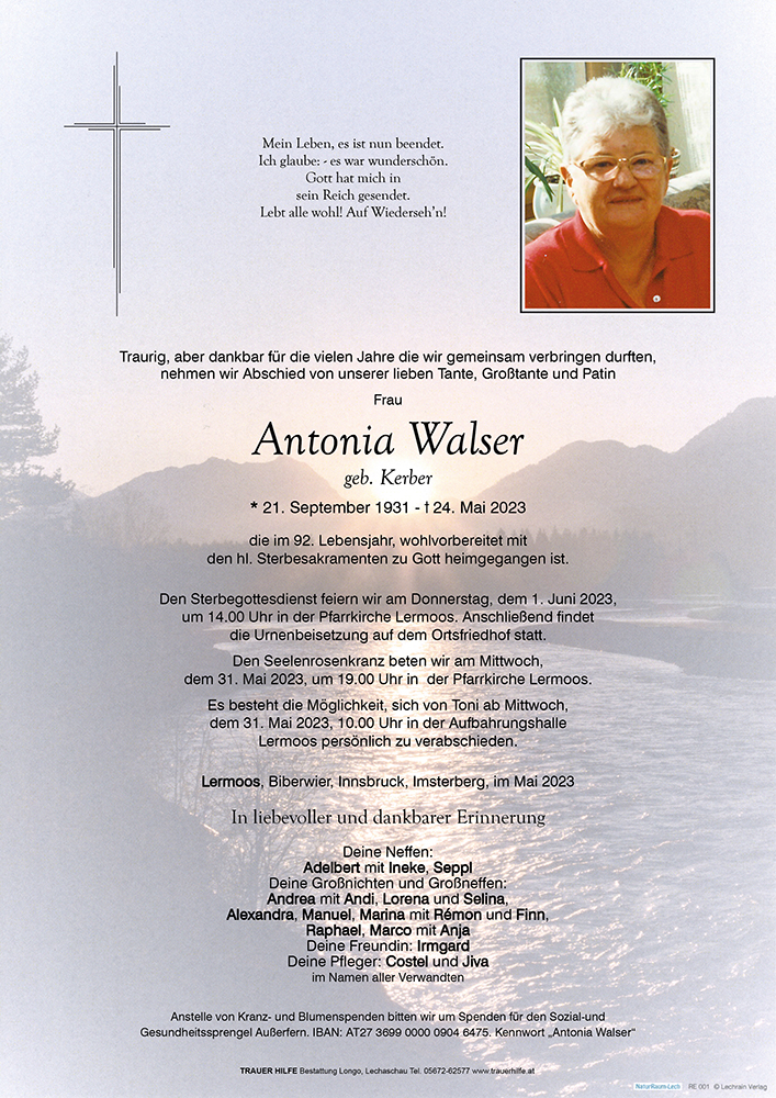 Kondolenzbuch für Antonia Walser