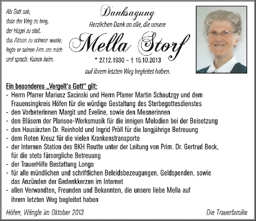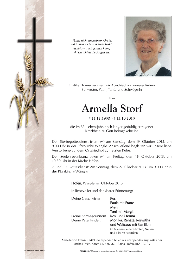 Liebe Trauerfamilie wir möchten Euch unser ehrliches Mitgefühl bekunden. Ihr habt Eure Armella so gut betreut, das ist alles was man tun kann und der Glaube hilft in schweren Zeiten weiter.