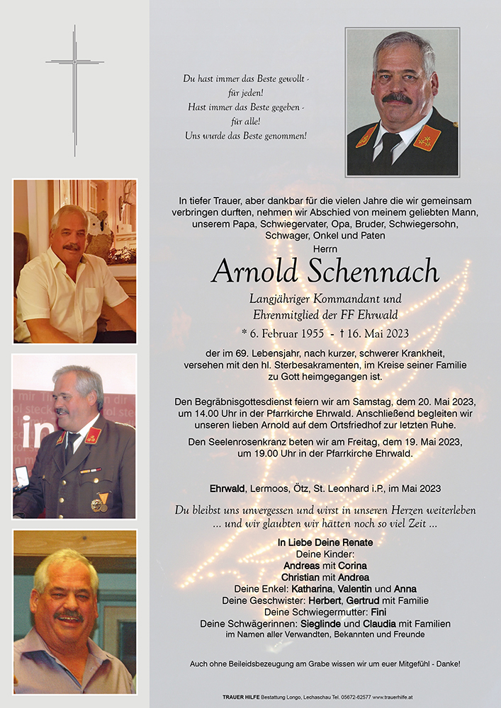 Ich werde Arnold immer in guter Erinnerung behalten. Ein Zimmerer mit Leibe und Seele und ein Arbeitskollege mit viel Herz. Es tut uns sehr sehr leid für euch, dass er euch so früh verlassen musste. Wir trauern mit euch.