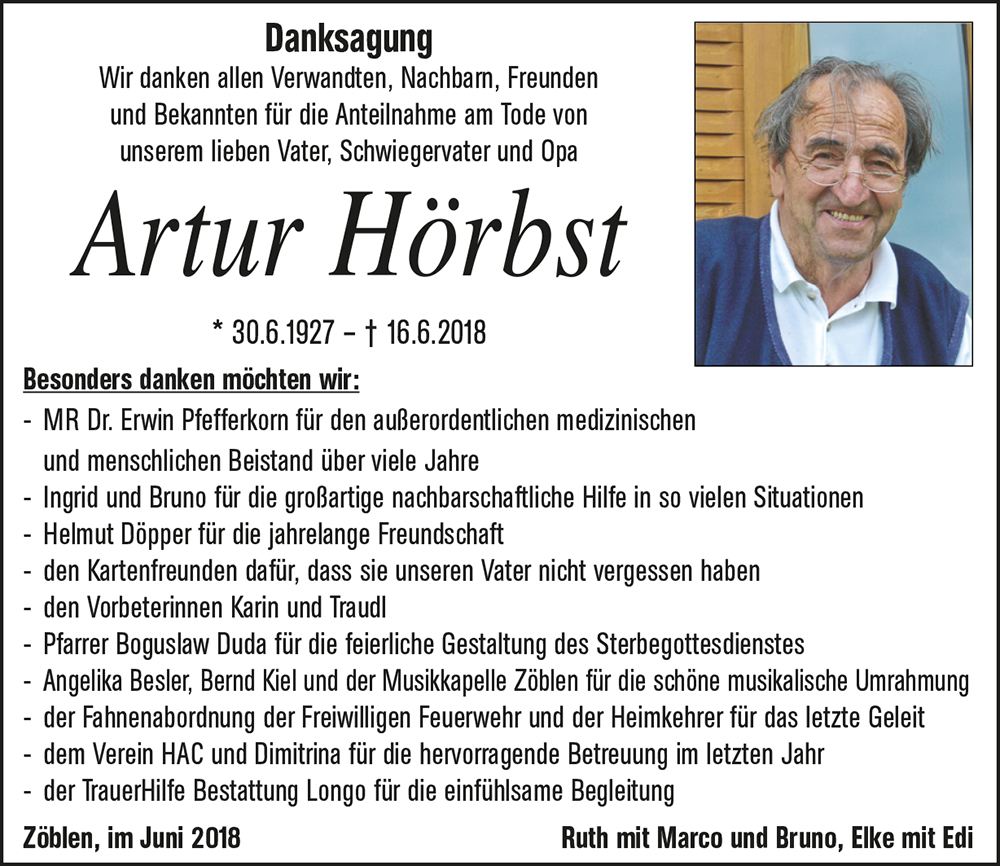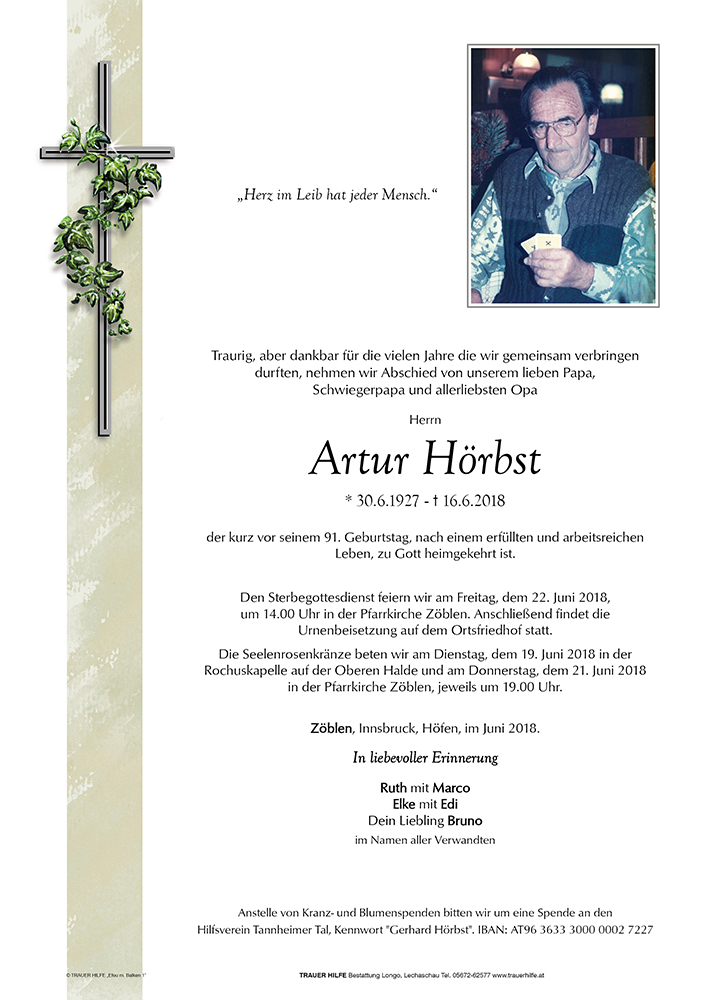 Kondolenzbuch für Artur Hörbst