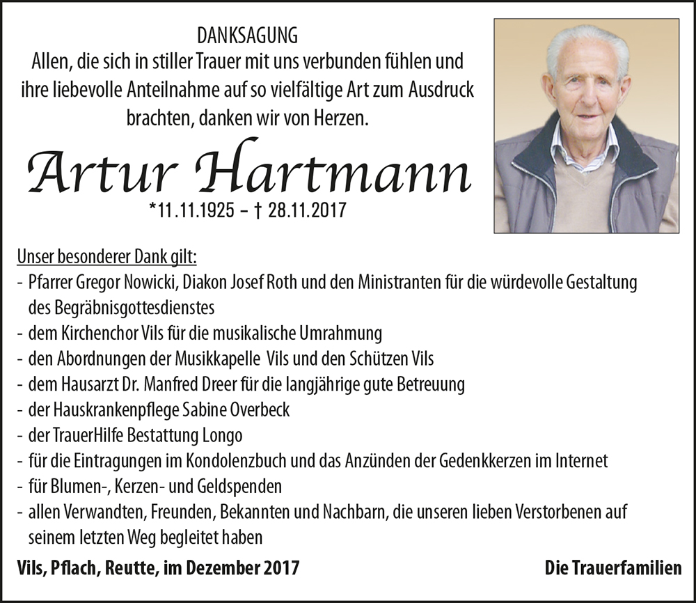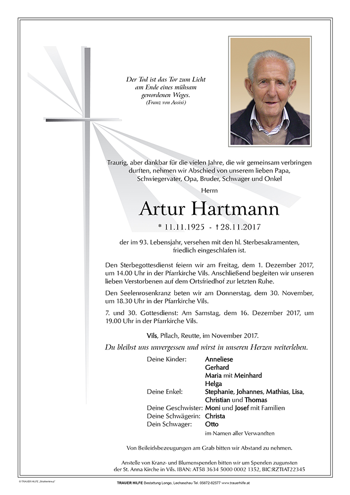Kondolenzbuch für Artur Hartmann