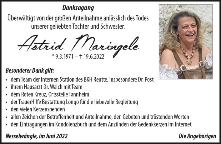 Kondolenzbuch für Astrid Maringele