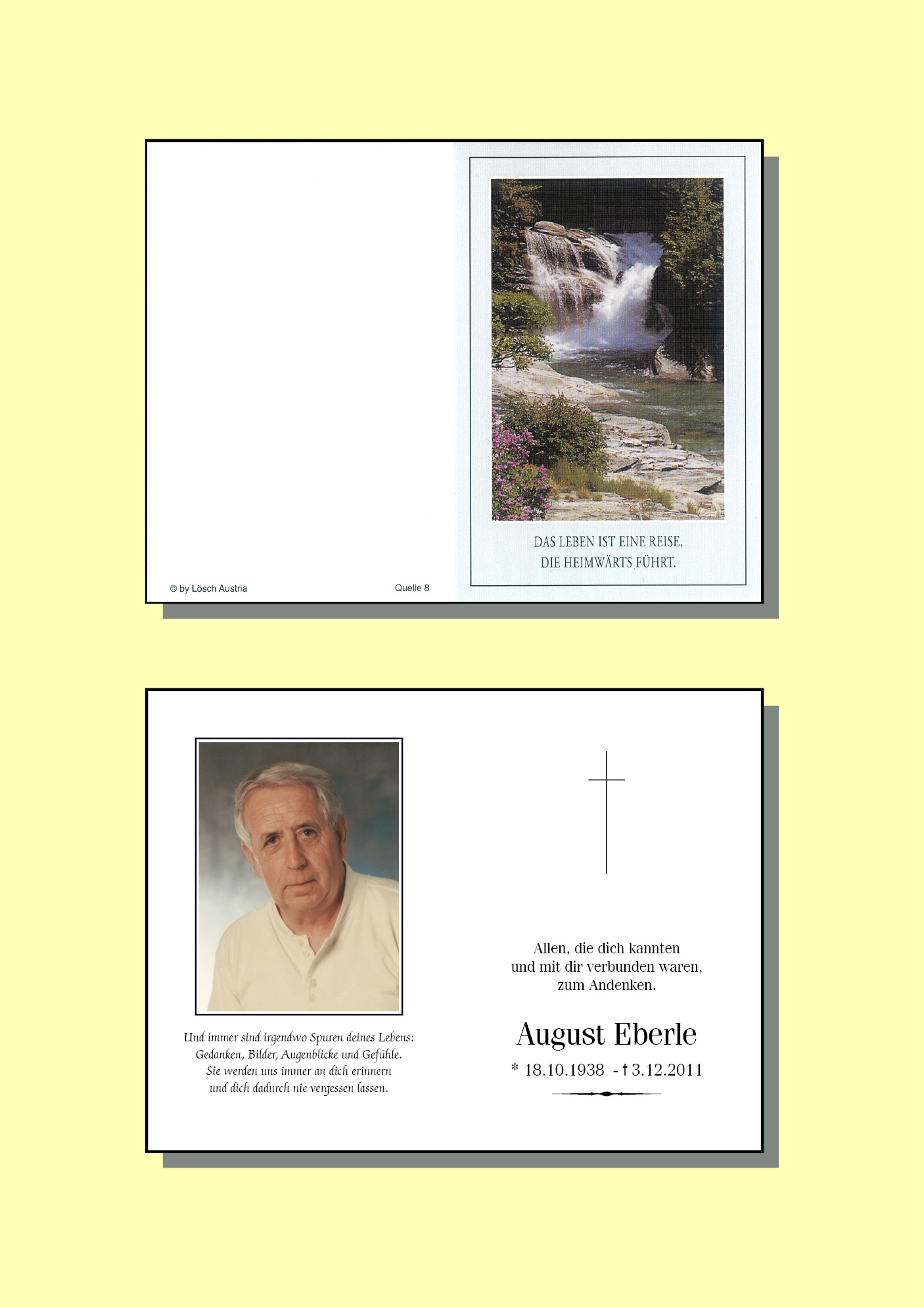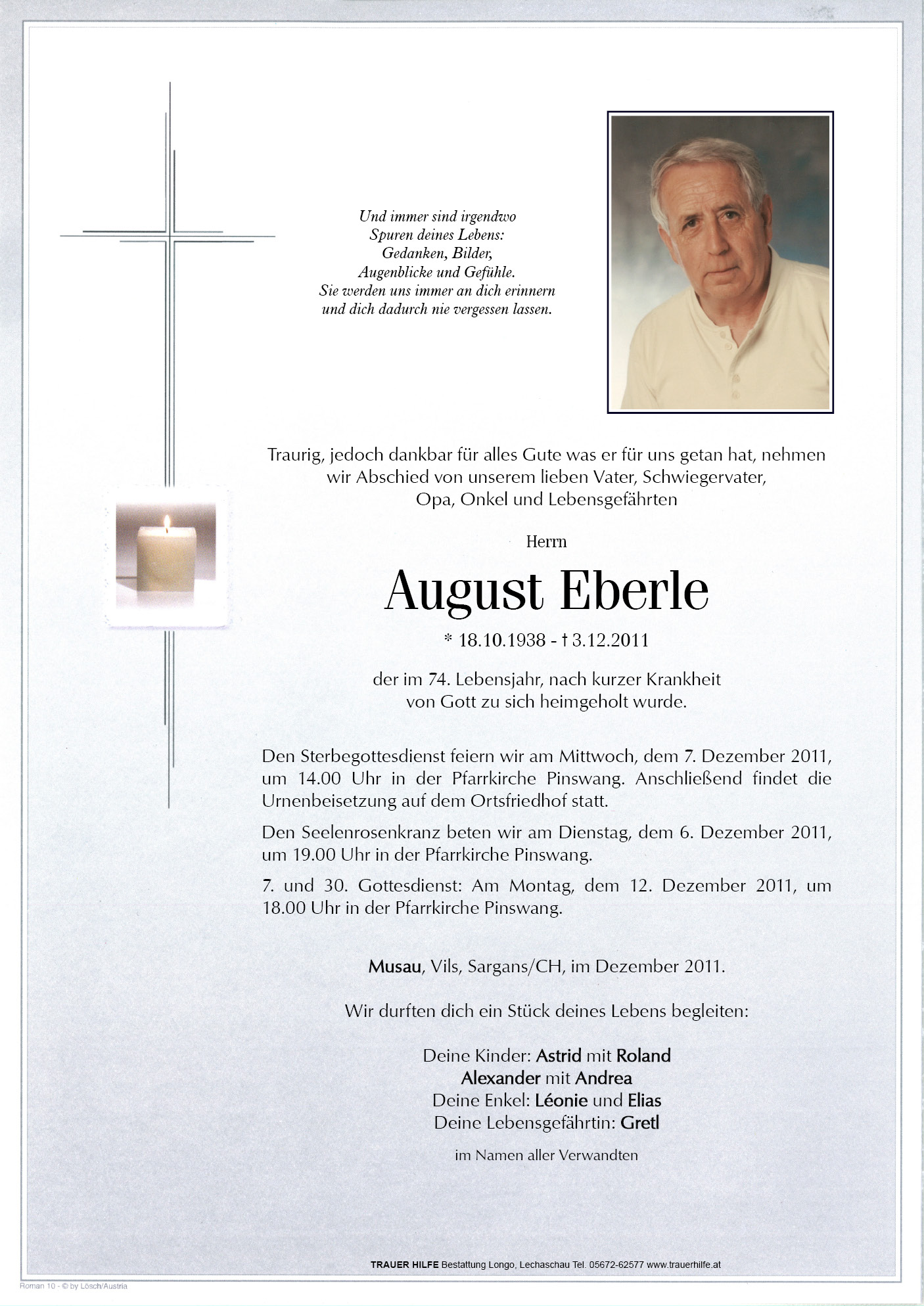 Als Gott sah,dass der Weg zu lang,der Hügel zu steil,das Atmen zu schwer wurde,legte er seinen Arm um mich und sprach: Komm heim. Es ist immer zu früh,wenn ein Vater geht.