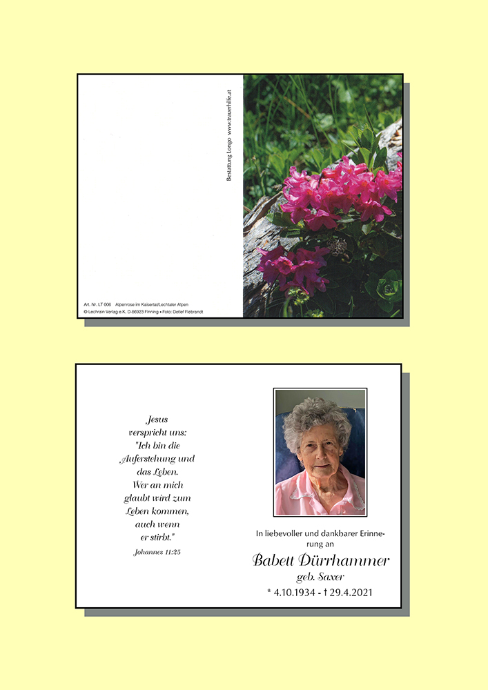 Kondolenzbuch für Babett Dürrhammer