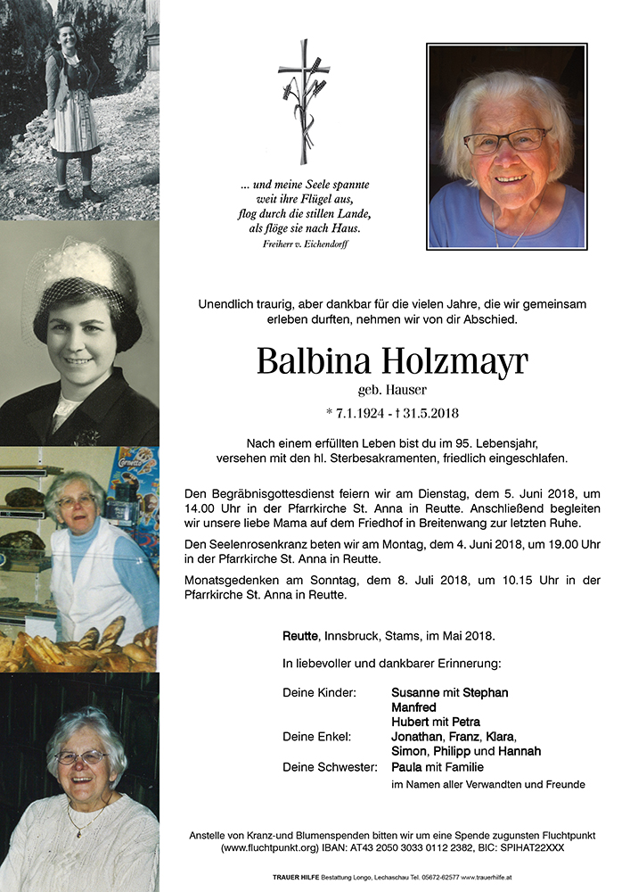 Kondolenzbuch für Balbina Holzmayr