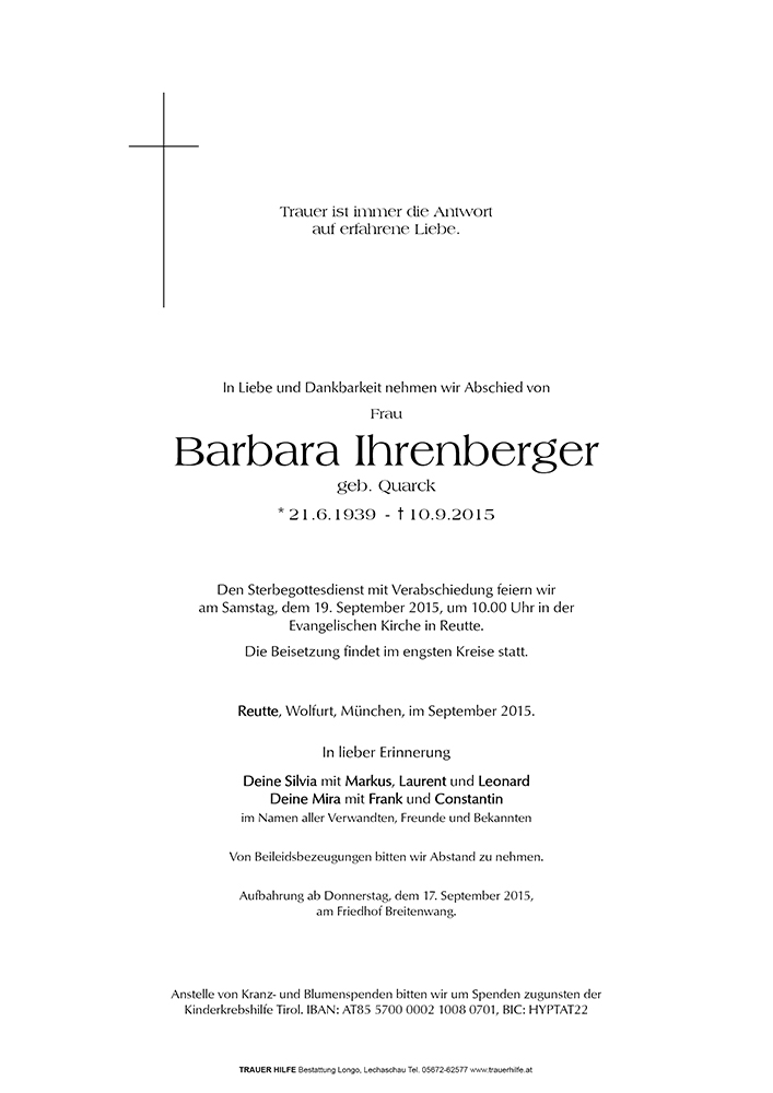 Kondolenzbuch für Barbara Ihrenberger