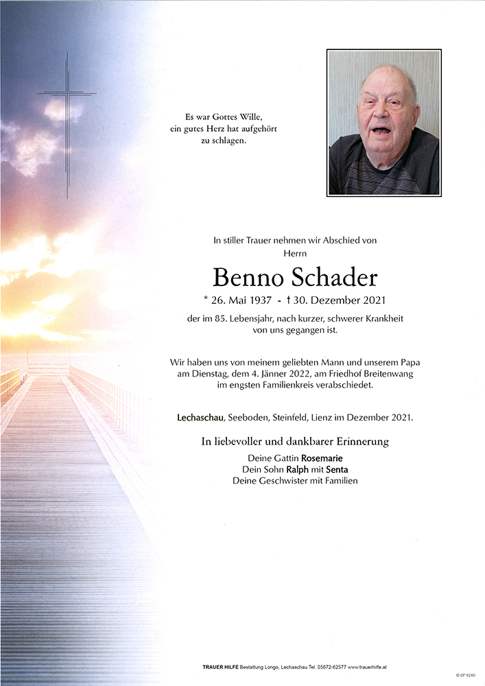 Kondolenzbuch für Benno Schader